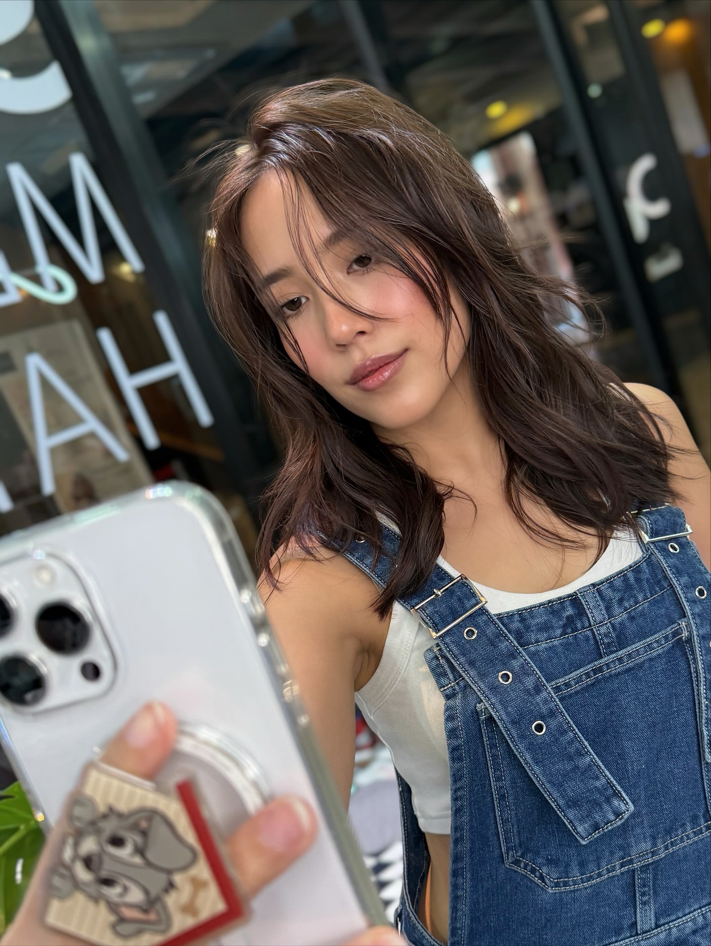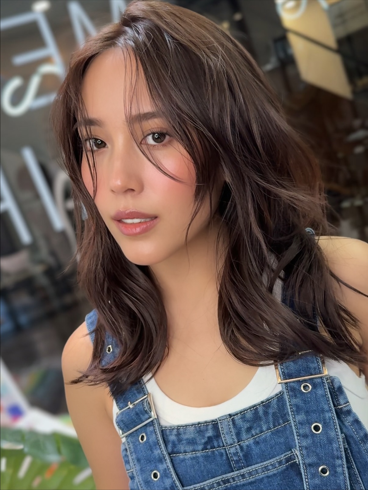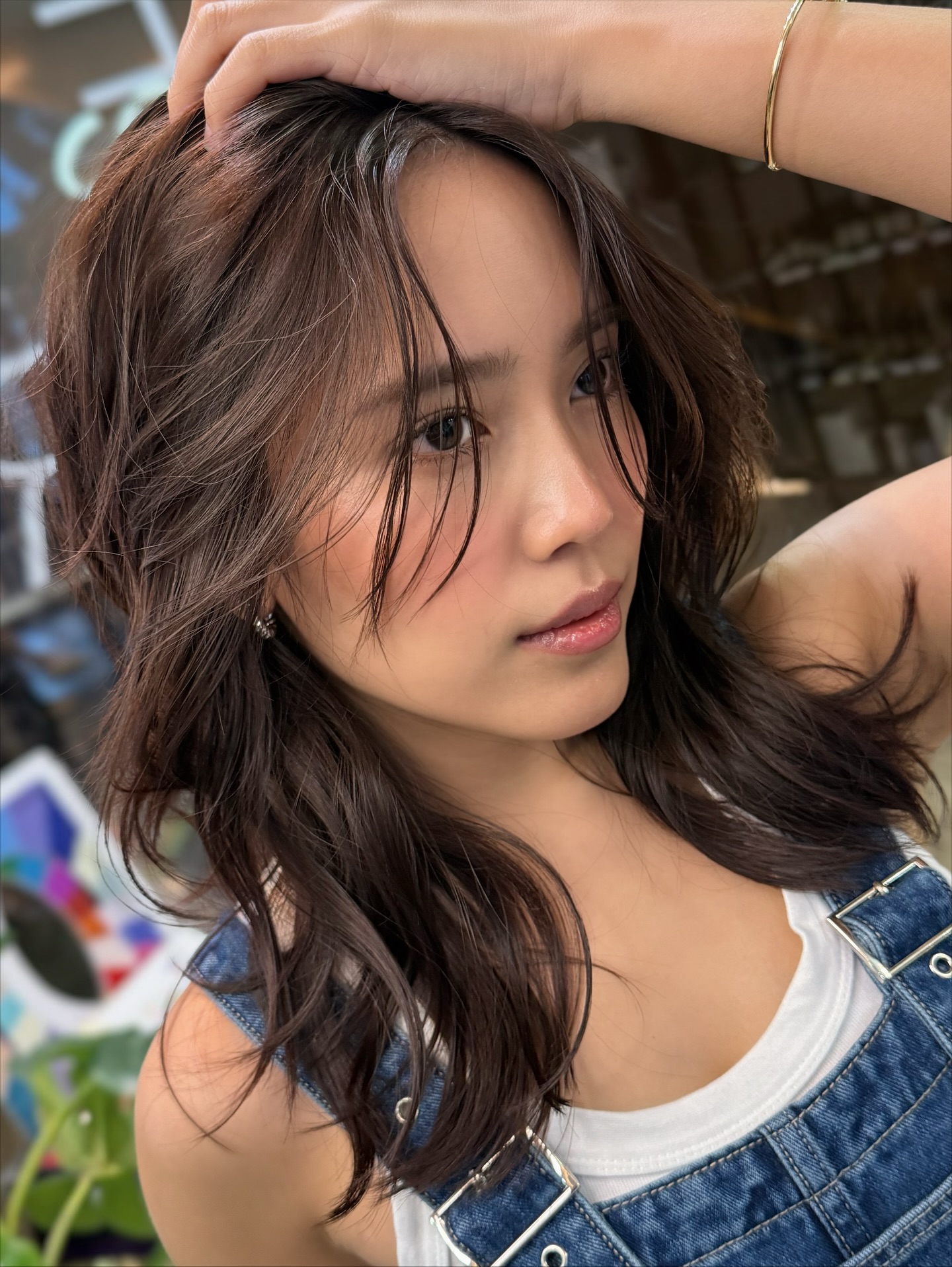 柔らかなウェーブが入ったミディアムヘアは、カジュアルながらもファッショナブル。