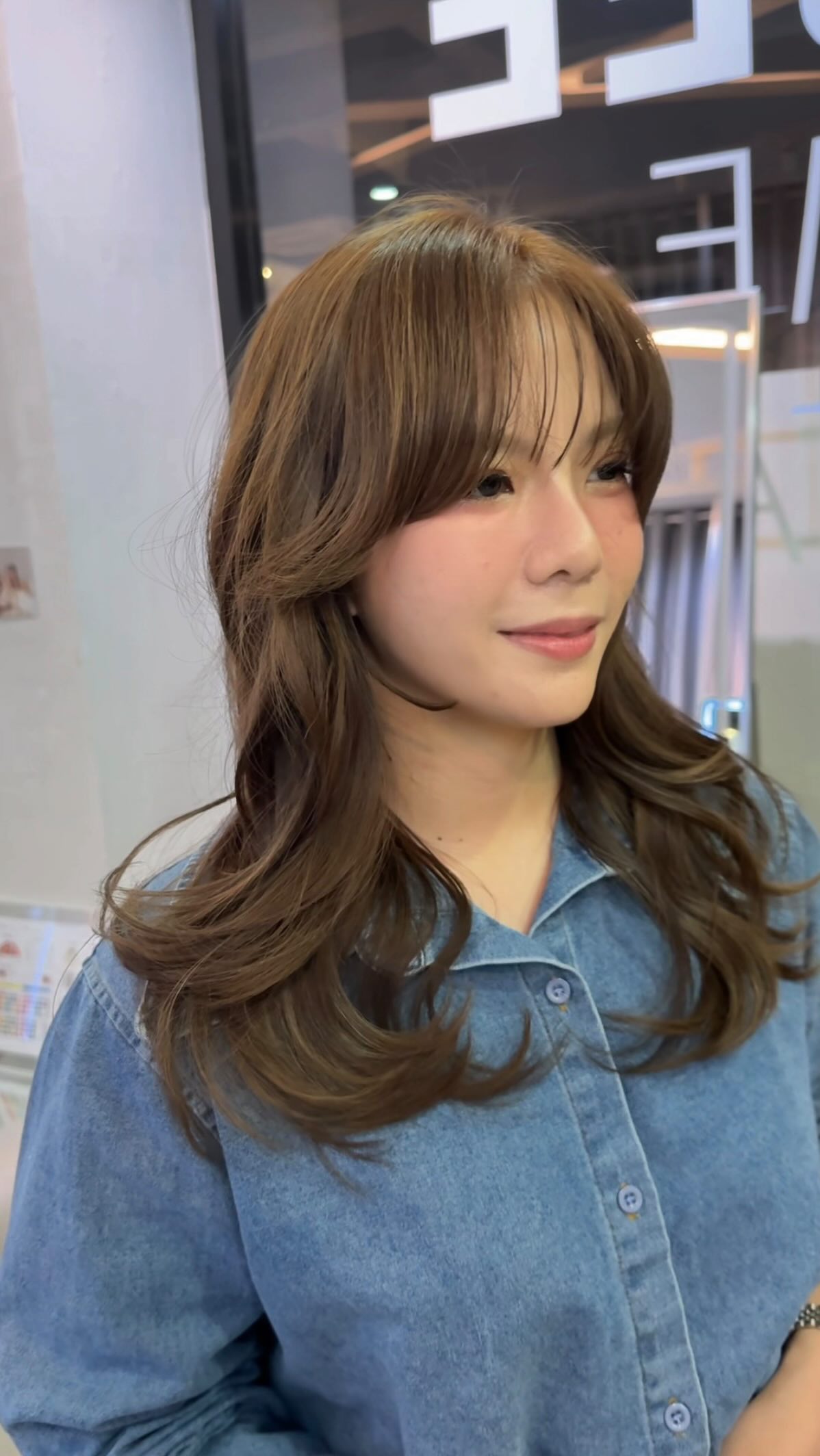 ソフトカジュアルな顔立ちに完璧に調和するミディアムレイヤースタイル。