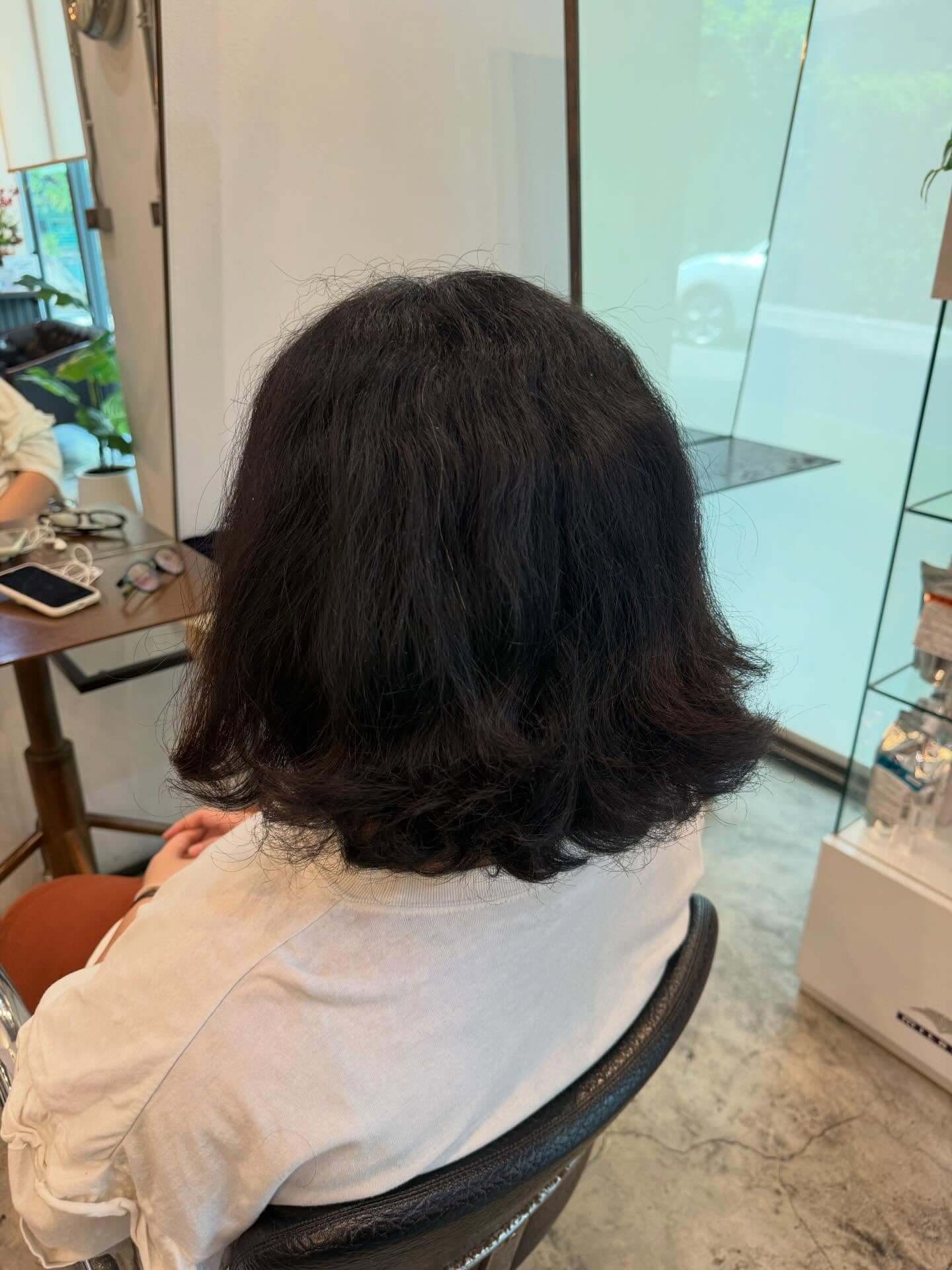 施術後は、髪が柔らかく、ツヤがあり、自然なストレートヘアになり、健康的な状態に。頭皮に強い臭いが残ることもありません。