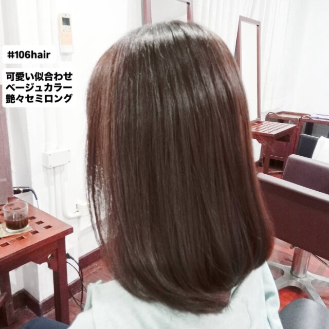 可愛い似合わせベージュカラー艶々セミロング【106 HAIR STUDIO】